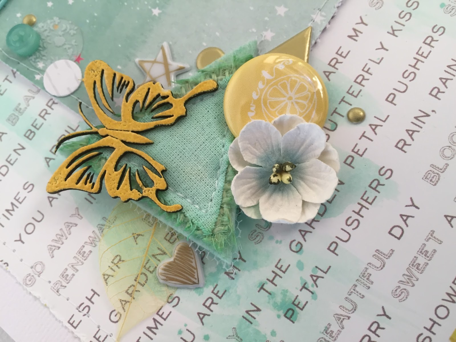 Another Charms Creation DIY triangle, misted to match the layout.